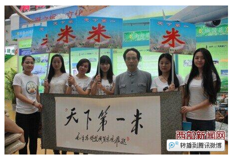 每天端起饭碗吃米饭的时候,你可知道,还有一种兼具降血压、降血脂、减肥、美容、保健等作用、富含维生素等多种微量元素的“天下大米”?你可知道“天下大米”产自哪儿?这种“天下大米”就生长在陕西省南郑县黄官镇何家沟村“翠草碧叶”原生态有机农业示范区。5月24日,在第十八届东西部合作与投资贸易洽谈会上,陕西翠草碧叶生态农业有限公司主营的“天下大米”亮相西洽会,扮演毛泽东的特型演员宋晓飞也来助兴,向与会者力推荐“天下大米”。