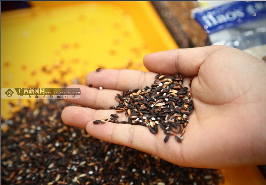 老挝紫米属于大米品种,是其稀有的含有“钼”微量元素的原生态粮食。生长期为6个月,一年仅生产一季,不施化肥和农药,完全依靠自然界的平衡能力生长,而且它还富含花青素,有助于预防多种与自由基有关的疾病,包括癌症、心脏病、过早衰老和关节炎。那么问题来了,这么好的紫米在哪可以买得到呢?那当然是在东博会的老挝馆里了,价格有点小贵,90元5斤,大家可以去买来尝尝。