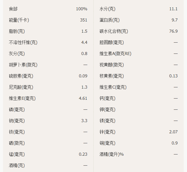 黄米的营养成分(营养素含量/每100克)