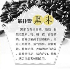 营养价值:黑色入肾经,因此,黑米有滋阴补肾的功效。此外,还可以补益脾胃,益气活血。黑米外皮中的花青素更具有抗衰老的作用。