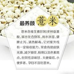 营养价值:低脂、低热量,含有丰富蛋白质和纤维素,易消化吸收,健脾、补肺、清热、利尿、消水肿,还有美白消斑的作用,是很受女性青睐的美容食品。但薏米性寒,孕妇应避食用。