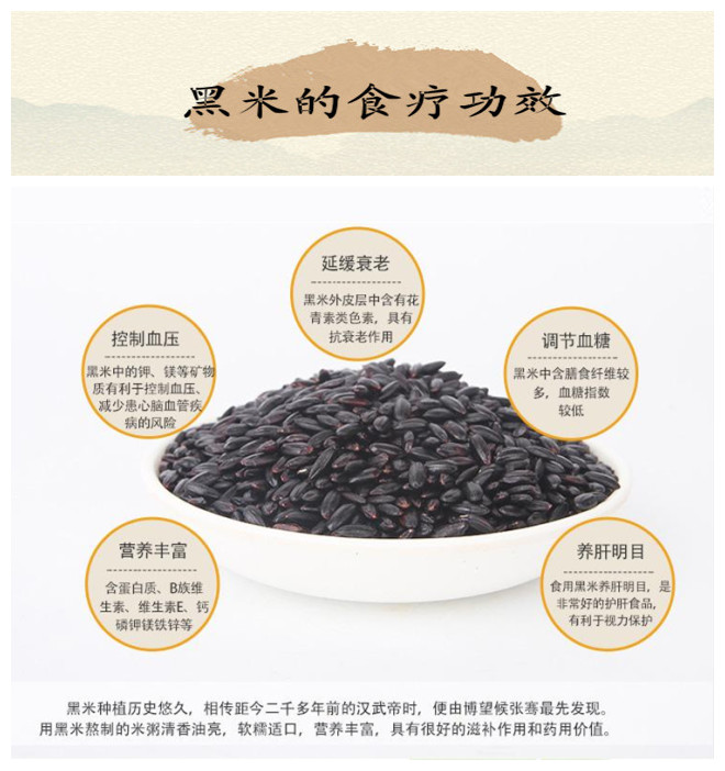 因此被称为“补血米”、“长寿米”等;我国民间有“逢黑必补”之说。
