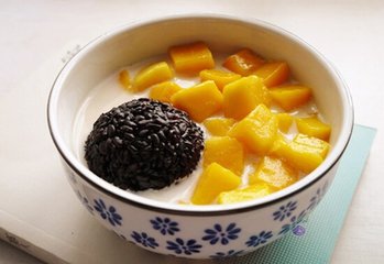 黑米1杯,水1.5杯,椰浆半罐,方糖2块,芒果半个。