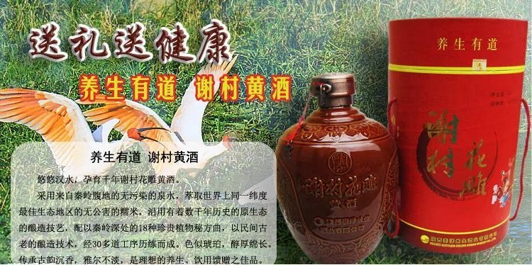 谢村黄酒产于世界珍禽朱鹮的故乡——陕西洋县,这片有着“天然温室”之称的神奇土地。这里土壤肥沃,矿藏丰富,五谷优生。优良的自然地理环境为谢村黄酒的酿制提供了的先天条件。 “粮为酒之肉”——酿制谢村黄酒的主要原料是名贵的“米中三珍”(香米、糯米、黑米),独特的酿酒原料,使所酿的酒,不加糖自甜,不加香自香,不加黄自黄,醇厚甜润,芬芳清溢。